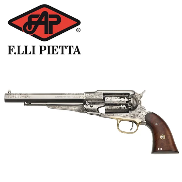 Si vous êtes passionnés par les armes historiques des cow-boys, le vieux mythe de l’Ouest Américain, la reconstitution de la guerre civile américaine, ou l’enthousiasme du tir monté, Pietta est votre fournisseur pour les répliques historiques des armes à poudre noire, à levier d’armement, à simple action et à barillet.