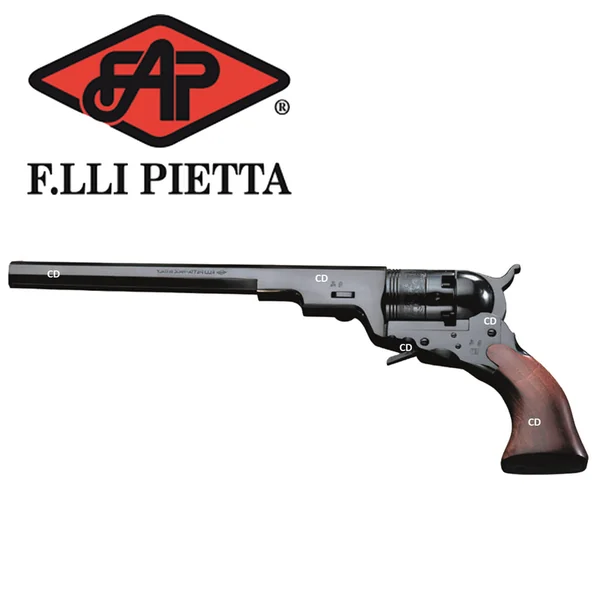 Si vous êtes passionnés par les armes historiques des cow-boys, le vieux mythe de l’Ouest Américain, la reconstitution de la guerre civile américaine, ou l’enthousiasme du tir monté, Pietta est votre fournisseur pour les répliques historiques des armes à poudre noire, à levier d’armement, à simple action et à barillet.