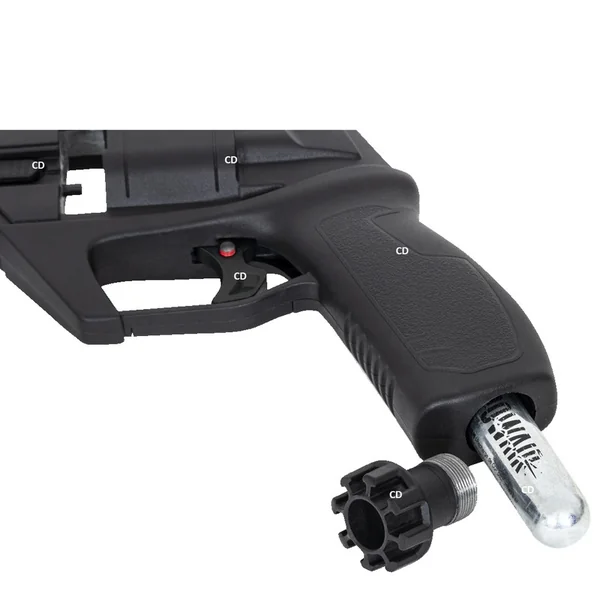 La puissance est fournie par une cartouche de CO2 située dans la poignée.