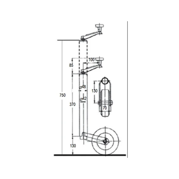 Roue Jockey Lalizas télescopique Fabriquée d’acier de haute qualité et avec roue en caoutchouc.Elle peut atteindre la hauteur maximale de 75cm. La taille la plus petite est de 50cm.