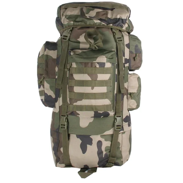Le sac à dos camo est un sac à dos d’une capacité de 65 litres. Il est muni d’un tissu Ripstop façonné en maillage. Les fils de chaîne et de trame présents dans sa structure sont conçus pour assurer sa résistance et éviter l’extension d’une éventuelle déchirure. Le sac à dos camo est rembourré au dos et aux bretelles. Il est également renforcé par un cadre aluminium.