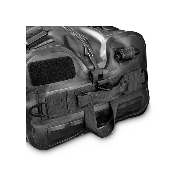 Sac à dos étanche HPA Hybridduffle 90 Noir Synthèse parfaite entre un sac de type duffle bag (polochon) et un sac à dos grâce à son système de portage ergonomique et sa modularité : bretelles escamotables, poignées de portage amovibles et bandoulière pouvant être positionnées sur de multiples points d’accroches.