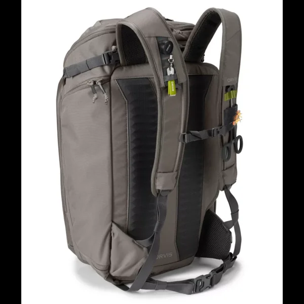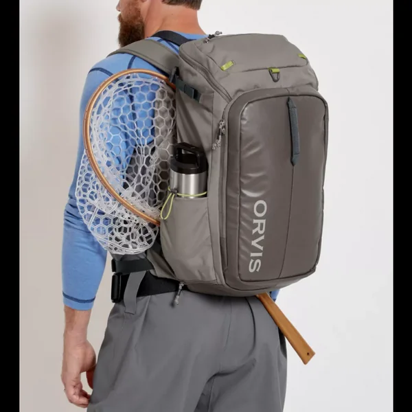 l’Accès supérieur et latéral, la poche intérieure zippée avec diviseurs amovibles, le porte canne extérieur font du sac à dos BUG Out et ses 25 litres de contenance un produit technique spécifique très fonctionnel, tout en étant compatible avec le Chest Pack Orvis.