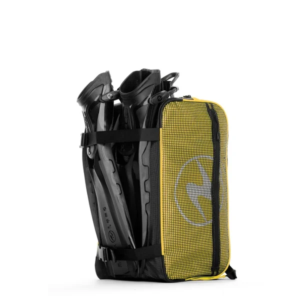 – Les sangles de fixation présentes sur l’arrière du sac permettent d’accrocher des palmes de toutes tailles.