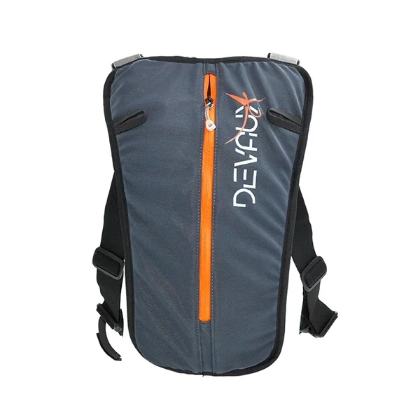 Une grande poche dorsale amovible légère, matelassée, aérée, zippée.