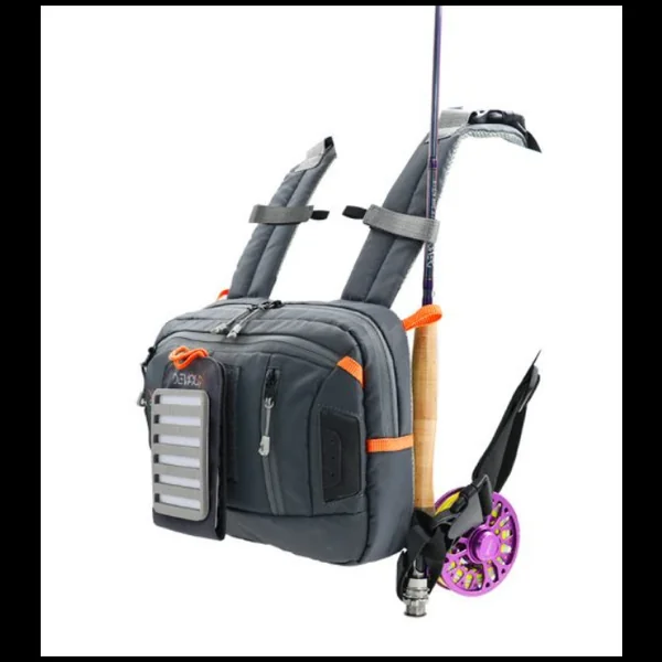 Sa poche principale est modulable et peut contenir de grande boîte à mouches, streamers et leurres.