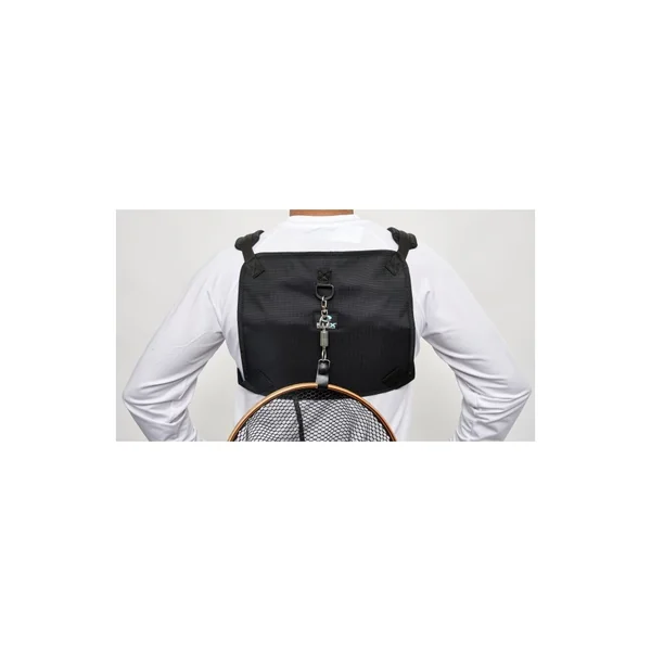 - Une face dorsale plate, pensée pour ne pas gêner le port d’un sac à dos, avec un système de fixation pour une veste étanche via cordon élastique et plusieurs anneaux D, idéaux pour y attacher une épuisette.