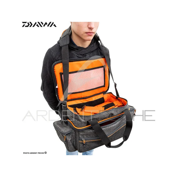 Ce sac est idéal pour vos séjours de pêche ! Il est conçu pour transporter différents types de matériel : de pêche, vêtements, accessoires, etc. En effet, il est divisé en deux compartiments. Celui du bas offre une capacité de 38 x 25 x 15cm et celui du haut est divisé en plusieurs compartiments amovibles. Vous trouverez également du rangement dans les deux poches latérales ainsi que dans la petite pochette en mesh qui se trouve sur lavant. Le dessous du sac est étanche et renforcé. Vous pourrez transporter ce sac en bandoulière grâce aux sangles rembourrées ou à la main grâce aux poignées. Ce sac sadapte donc à vos besoins pour assurer la bonne protection de toutes vos affaires.