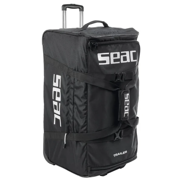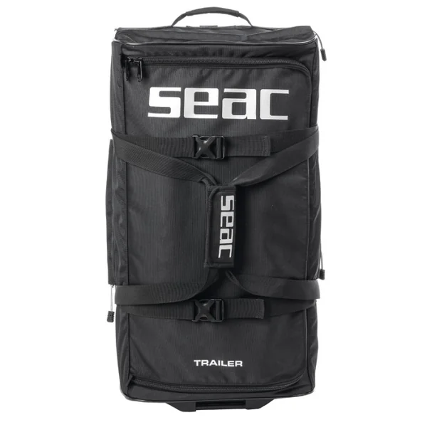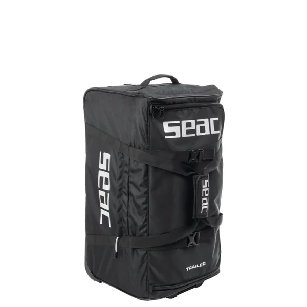 L’ACCESSOIRE INDISPENSABLE POUR DISPOSER TOUJOURS DE VOTRE ÉQUIPEMENT : SEAC Trailer est un sac à roulettes pour équipement de plongée spacieux, fabriqué en polyester 1000 DEN enduit PU ultra résistant. Capacité 110 l