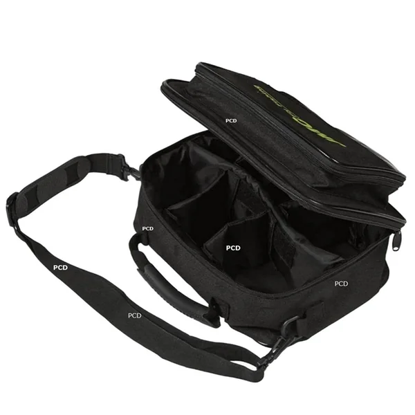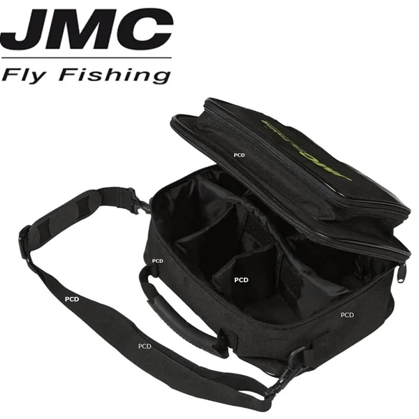 Sacoche matelassée, de marque JMC, munie de six compartiments pour ranger et transporter les moulinets en toute sécurité.