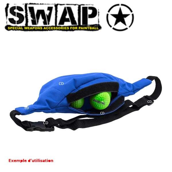 SACOCHE POUR BAZOOKA BALL BLEUE SWAP :Caractéristiques :-Sacoche, de marque SWAP, pour les balles BAZOOKA.-Le Bazooka Ball est conseillé pour une découverte ludique du Paintball.-Coloris Bleue.-Livrée vide. *Taille unique.