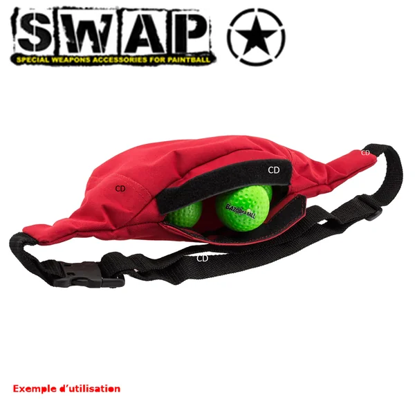 SACOCHE POUR BAZOOKA BALL ROUGE SWAP :Caractéristiques :-Sacoche, de marque SWAP, pour les balles BAZOOKA.-Le Bazooka Ball est conseillé pour une découverte ludique du Paintball.-Coloris Rouge.-Livrée vide. *Taille unique.