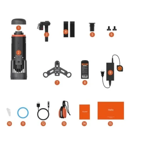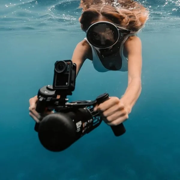 Conçu pour délivrer une propulsion de 12 kg, il permet au scooter d’atteindre une vitesse maximale de 5 km/h, assurant des déplacements rapides et efficaces sous l’eau.