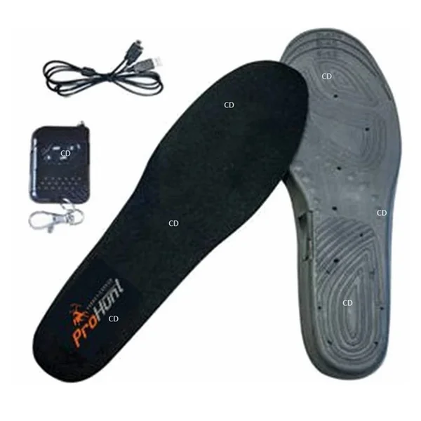 Paire de semelles chauffantes, électrique, rechargeable et réglable grâce à sa télécommande, de marque Pro hunt.
