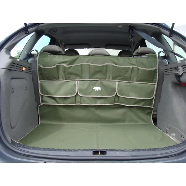 Partez à la chasse avec l’assurance d’un coffre ordonné et protégé en toutes circonstances.Rangement multipoches qui se fixe aux appuis têtes arrières, et grande bâche de protection pour votre coffre.