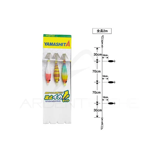 Le Hato Ika Set 5-1 est un montage muni de plusieurs petits egi Oppai Sutte de 5cm idéal pour la recherche des céphalopodes, notamment en bateau, en insistant sur le facteur de la concurrence alimentaire.