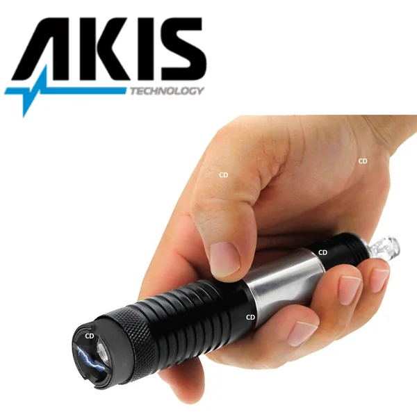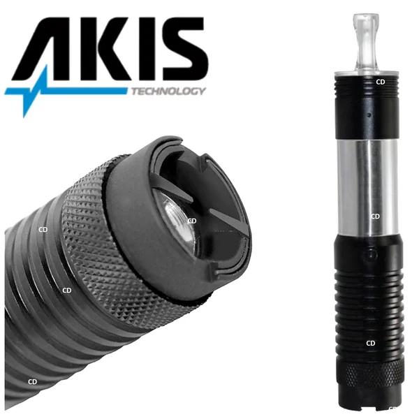 Ce shocker, de marque Akis, ressemble à une cigarette électronique, et dispose d’une fonction lampe de poche.