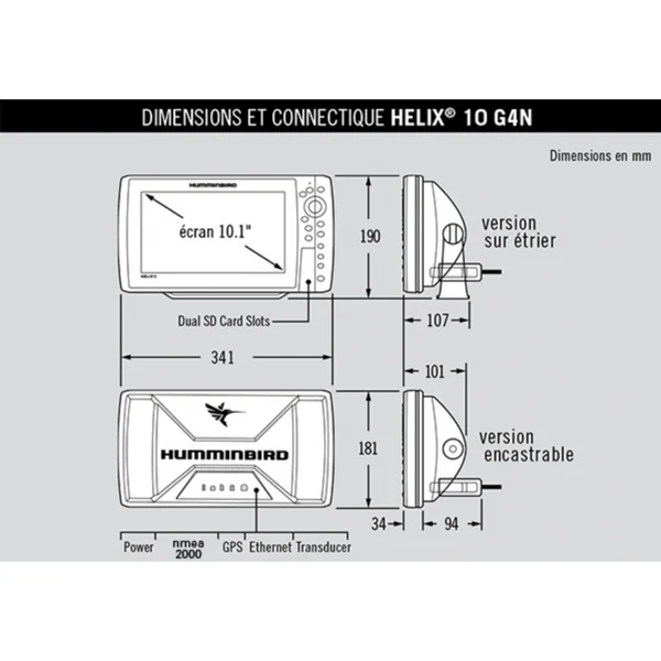 L’échosondeur Helix 10 G4N MEGA SI+ est doté d’un écran de 10,1 pouces. Il dispose des technologies Mega Side Imaging +, Mega Down Imaging +, Sonar Chirp Dual Spectrum et d’un GPS interne avec fond de carte Humminbird.
