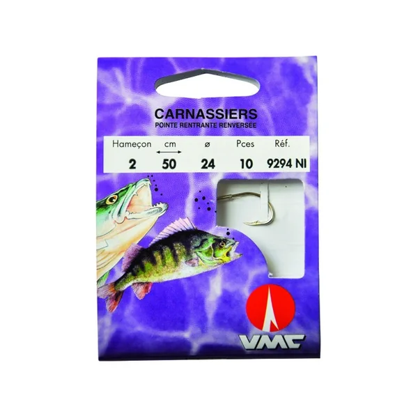 Spécial carnassier 9294 NI 50 cm Hameçons N°6 sur Nylon 20/100 Pointe rentrante, renversé.