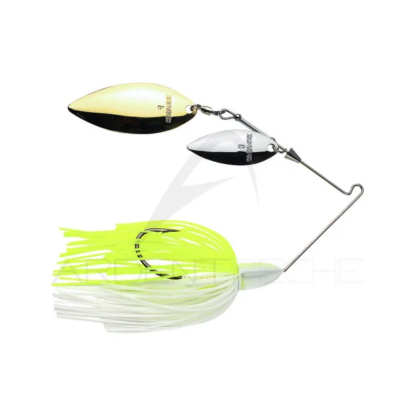 Keitech nous propose ici un magnifique spinnerbait avec double palette en feuille de saule. Sa tête en T lui permet de rester bien verticale pendant la récupération. Le système « Cone-Head Weed Guard » permet déviter que la rotation de la palette ne se bloque avec les algues.