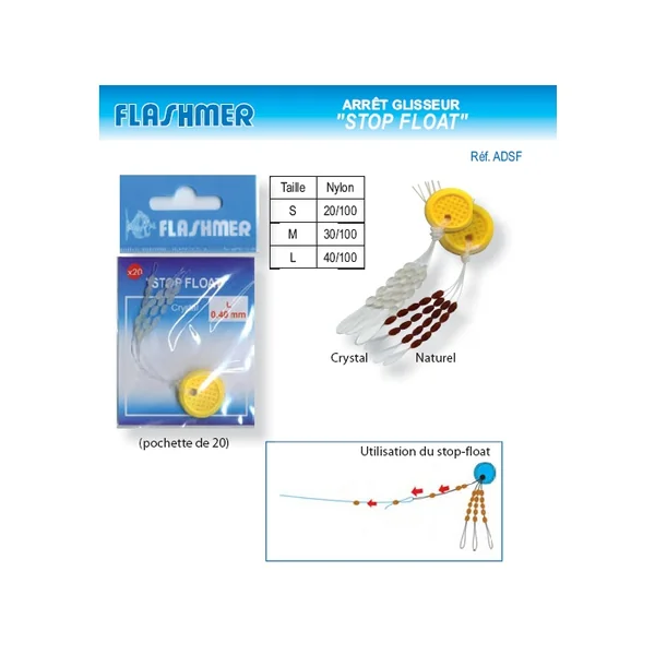 | Stop Float Cristal X 20 | Pochette de 20 Taille L> 40/100 Taille M> 30/100 Taille S> 20/100 |