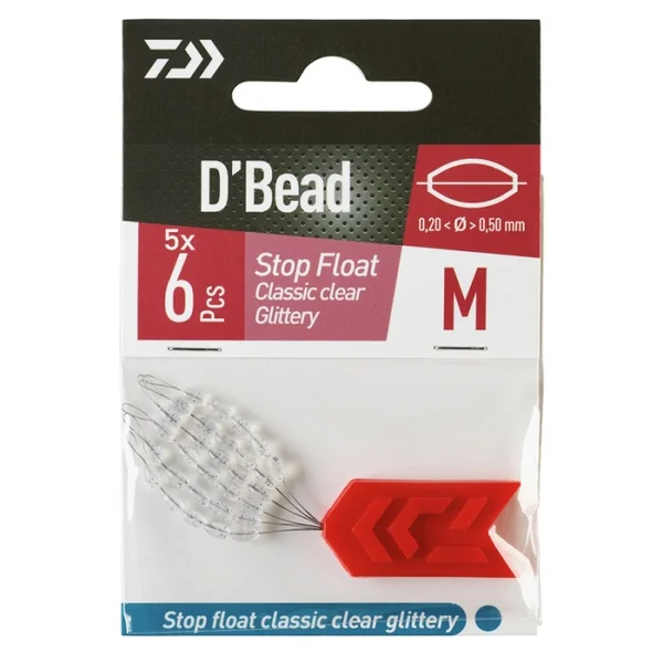 Stop float Daiwa D-Bead transparent Stopper en silicone anti-glisse. Ideal pour bloquer un flotteur ou un bas de ligne sur un corps de ligne.