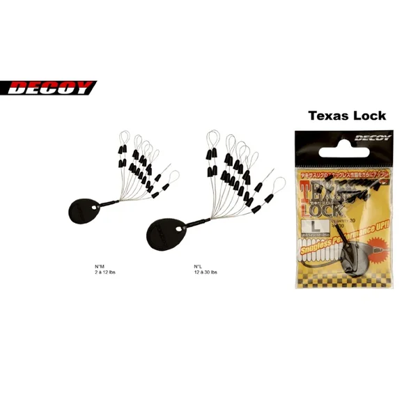 Stop Float Decoy Texas Lock Les bloqueurs Texas lock sont parfaits pour bloquer un leurre souple sur la hampe d’un hameçon mais également un plomb coulissant sur un montage carolina.