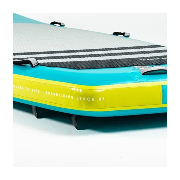 Les poignées renforcées (il y en a quatre) permettant un confort jusque dans le transport de la planche, et permettent de se tenir à la planche lors du franchissement de certains rapides difficiles.