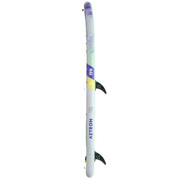 Le SUP paddle gonflable Aztron Soleil 11’0″ est équipé d’un deuxième aileron, très utile en windsurf pour remonter au vent, ou simplement pour apprendre en toute sérénité. Ce deuxième aileron qui se positionne au centre de la planche stabilise cette dernière et confère un bien meilleure appui à toutes les allures, du près au largue. Idéal pour l’apprentissage comme pour les balades.