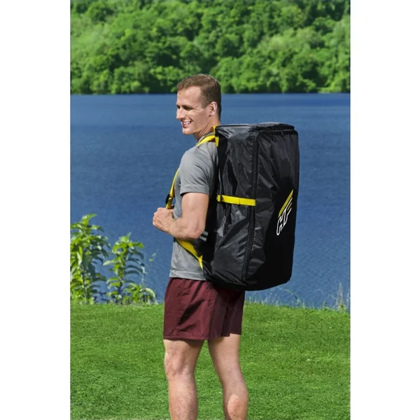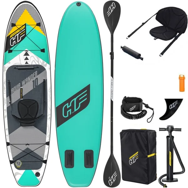 Le SUP Hydro Force Aqua Wander sera fourni avec un sac à dos de transport pratique pour un rangement efficace et un transport facile. Particulièrement léger et pratique, ce sac de transport est adapté à des paddles de différentes tailles. Également incluse, la pompe haute pression de chez Hydro Force est particulièrement simple d’utilisation. Enfin, une pagaie aluminium 3 parties réglable et un leash élastique polypropylène viennent compléter le pack.