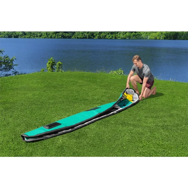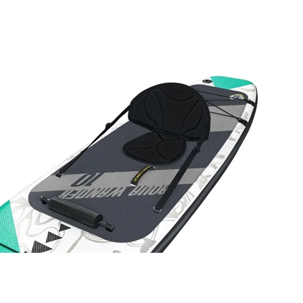Le paddle gonflable Aqua Wander est livré, en plus des accessoires indispensables, avec une pagaie convertible, un siège kayak et un cale-pieds.