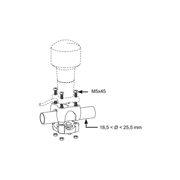 1 plasticlip, adaptable sur tout tube horizontal ou vertical de Ø 18,5 à 25,5 mm.