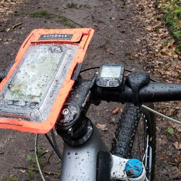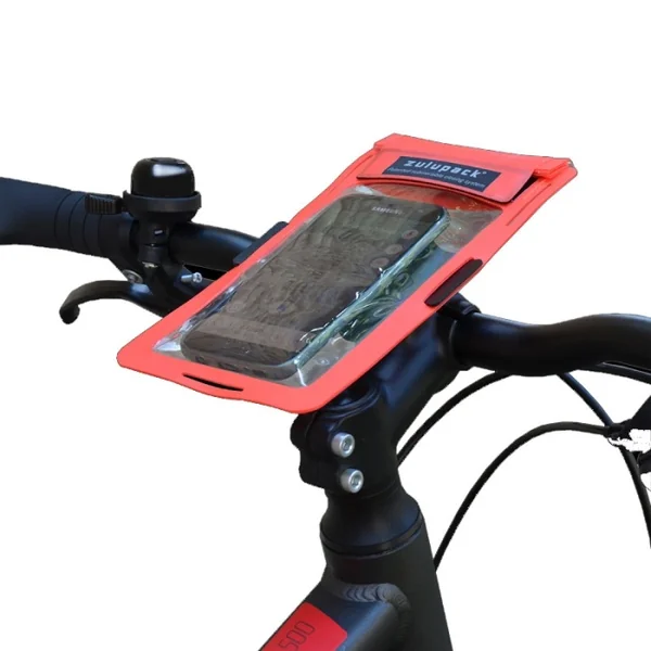 Support téléphone Zulupack Twist & Ride – Vélo/Vtt/trotitinette Idéal pour faire du vélo ou de la trottinette. La boucle RCT permet de fixer toute taille de téléphone sur le guidon. Soit dans une poche étanche soit protégé dans une coque araignée en silicone.