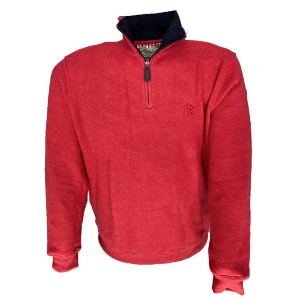 Composition : 50% coton, 20% polyester. Col montant zippé. Opposition de couleur à l'intérieur du col. Coloris : fraise. Tailles : du S au 4XL.