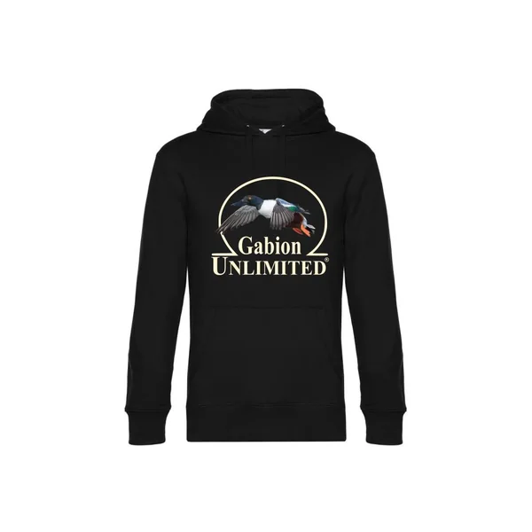 Le sweat à capuche Souchet de la marque Gabion Unlimited est un sweat de chasse de coloris noir sur lequel est floqué, en blanc, le logo de la marque avec un souchet. Ce sweatshirt à manches longues noir possède une grande poche kangourou au niveau du ventre permettant de garder les mains bien au chaud par temps froids. La grande capuche du pull nioir est réglable et ajustable par cordons de serrage, elle vous permettra de vous tenir chaud par temps venteux et de vous abriter des intempéries telles que la pluie ou la neige. Le pull à capuche possède au bout de chaque manche, au niveau des poignets, une couture permettant de serrer les poignets et ne pas laisser rentrer le froid. Cette couture est également présente au niveau de la taille. Ce sweatshirt de chasse, déstiné aux chasseurs de gibier d’eau, sera parfait pour vos passées aux canards et pour vos nuits au gabion et à la hutte. Elégant, il peut également se porter dans la vie de tous les jours au-dessus d’un tee-shirt avec un jean et une paire de baskets. Ce sweat existe en grandes taille puisqu’il est proposé en taille S, taille M, taille L, taille XL, taille 2XL, taille 3XL et taille 4XL.