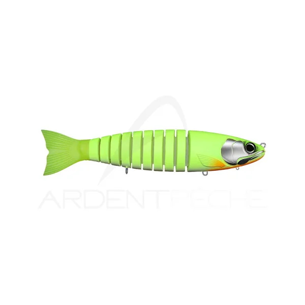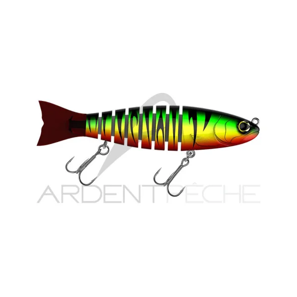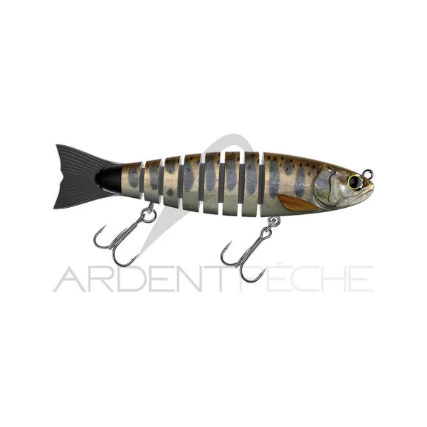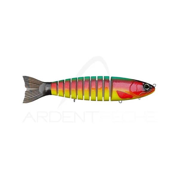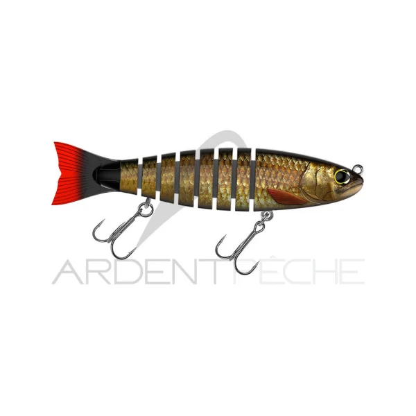 Le Strout, avec ses 8 parties reliées par un textile technique, lui confère une nage et une fluidité inégalée. Il saura tromper les brochets les plus méfiants quand vous le ferez tressaillir tel un poisson agonisant et fera réagir les brochets en chasse lorsque vous le ramènerez en linéaire.
