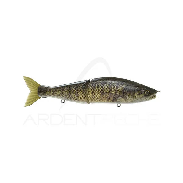 Le Jointed Claw 178 F est un swimbait flottant constitué de deux parties articulées. Ce leurre nage grâce à une simple récupération au moulinet. La pression de l’eau sur ses flancs suffit à produire une nage réaliste qui rend pratiquement impossible toute perception néfaste de la part du poisson. Nous le conseillons à tous les amateurs de pêche du brochet ou des gros black bass au swimbait.
