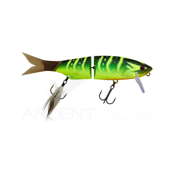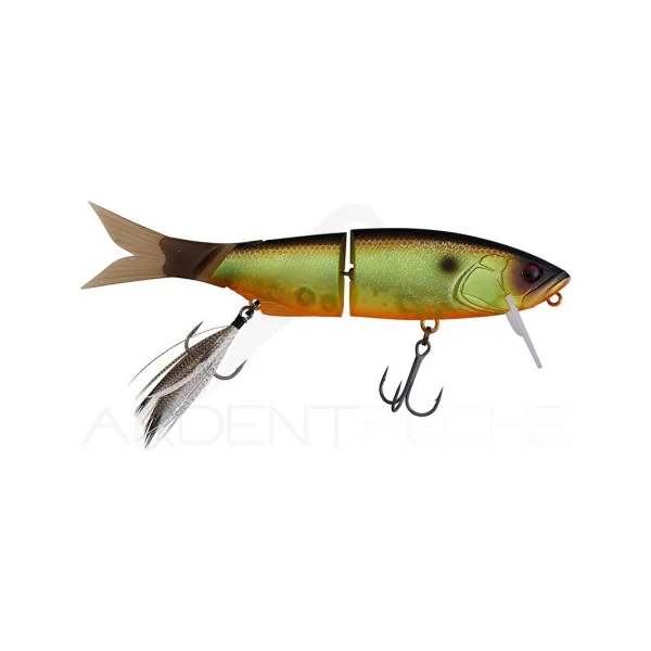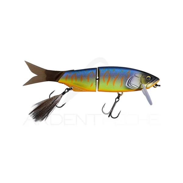 Le MAEKON 150 SF est un swimbait doté du système innovant Mono Flex Joint System. Ce mécanisme améliore considérablement laction de nage du leurre en offrant une grande liberté de mouvement au corps. Sa partie arrière, uniquement attachée par un rolling, produit une action de roulis important qui renforce son attractivité. Ce leurre permet plusieurs types danimations selon les besoins. Il peut être utilisé en « stop & go » pour cibler les zones proches des structures, ou en pêche linéaire, plus ou moins lente, pour explorer efficacement les plateaux dherbiers ou longer les berges. Lors d’une récupération linéaire, il génère un wobbling, comparable à celle d’un crankbait de grande taille. Sa queue réaliste lui donne un aspect vivant, particulièrement lors des phases de pause, ajoutant ainsi à son réalisme. Avec sa taille moyenne, le MAEKON est polyvalent et peut être utilisé avec des cannes spinning ou baitcasting de puissance Medium Heavy. Grâce à son fort rolling et à sa capacité à déplacer un grand volume d’eau lors des récupérations continues, il séduira rapidement les pêcheurs de brochet ou de black-bass spécimens, quelles que soient les dimensions du plan deau. Pour accroître encore sa polyvalence, il est conseillé dajouter un lest John Weight, permettant de modifier sa densité pour le rendre suspending, coulant lent ou coulant rapide selon les besoins. Le MAEKON simpose ainsi comme un leurre performant et adaptable pour toutes les pêches de prospection.