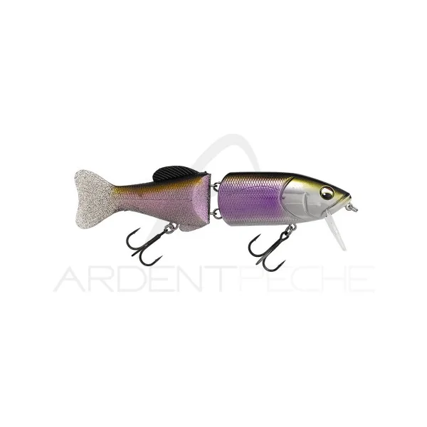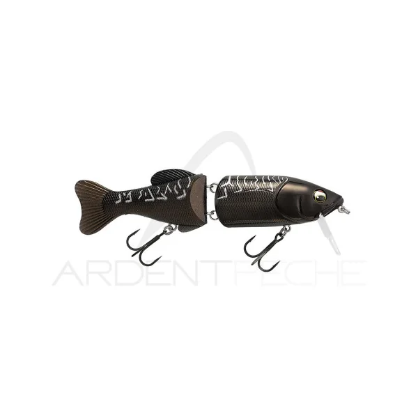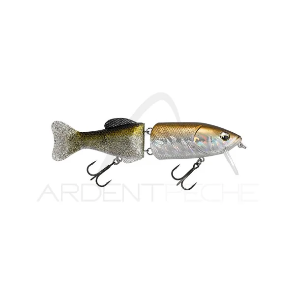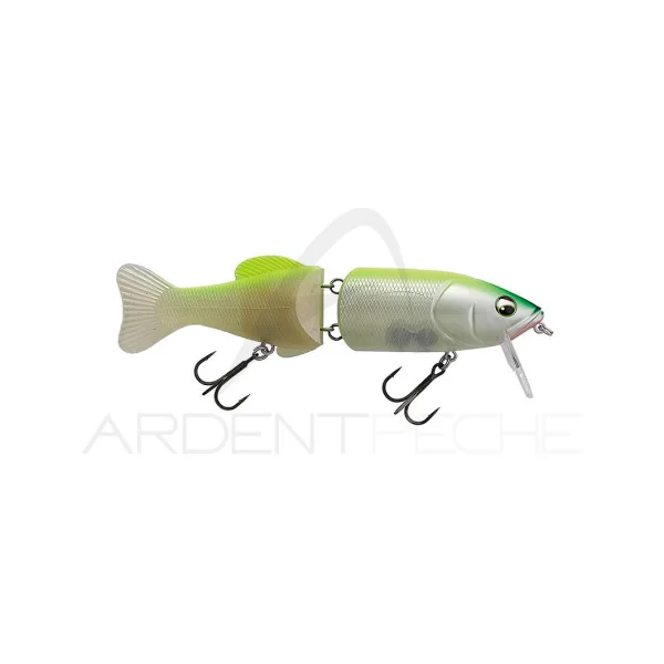 Swimbait flottant en 2 parties : une partie avant dure, et une partie arrière souple. Il est équipé d’une bavette qui va permettre de le faire nager même à faible vitesse et son articulation est très ouverte pour lui donner plus de mobilité et de réactivité lorsque vous allez le twitcher.