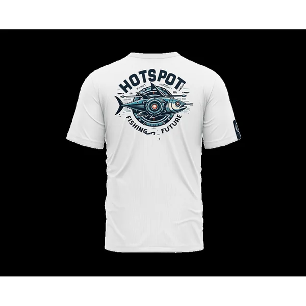 Son design est rehaussé par un imposant motif graphique de thon futuriste dans le dos, accompagné de multiples finitions soignées. Sa coupe est standard, avec un col rond renforcé par un bord-côte, et il est doté d’une bande anti-transpiration contrastante ornée du logo HS Design, ajoutant une touche d’élégance fonctionnelle.