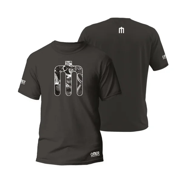 – Le célèbre “M” d’ Omer en forme de trident est imprimé en camouflage sur le devant et en blanc dans le dos