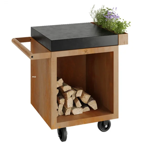 Découvrez cette table en corten Ofyr avec son plan de travail en céramique, ainsi que ses roues et sa poignée pour un déplacement facilité dans votre jardin ou terrasse.
