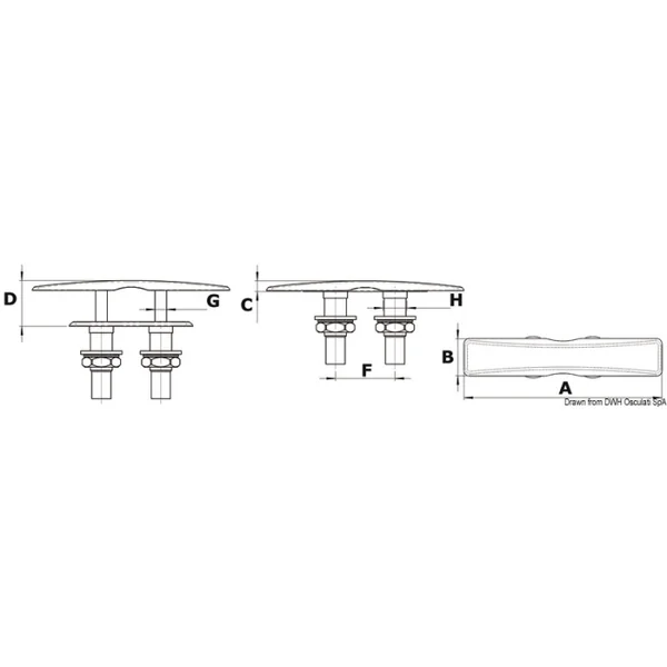 Taquet Osculati Flat retractable profil ultra-bas – 160 mm En inox AISI 316 poli miroir Caractéristiques Taquet Osculati Flat retractable profil ultra-bas – 160 mm
