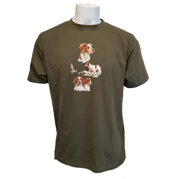Tee-shirt enfant thème chasse, motif épagneul100% coton. Tailles : 3/4ans au 12/14ans