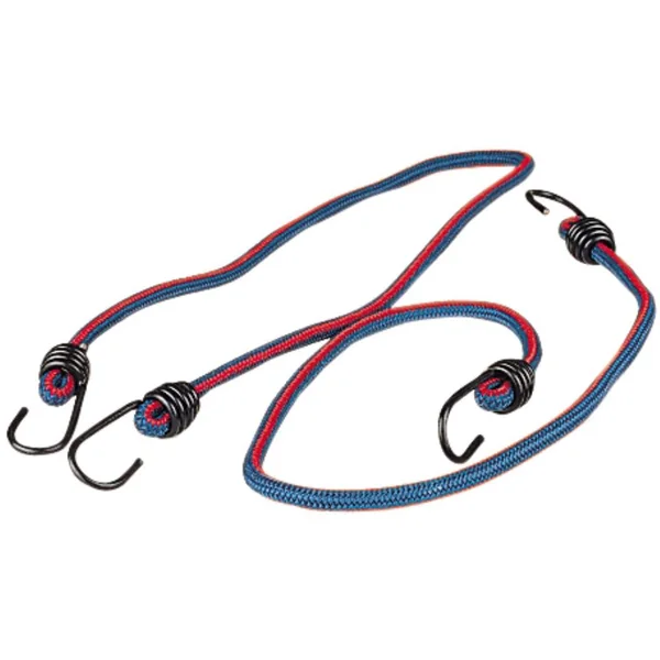 Composition : tresse polypropylène. Extrémités en métal. Longueur : 80 cm détendus et 150 cm tendus. Diamètre : 9 mm.