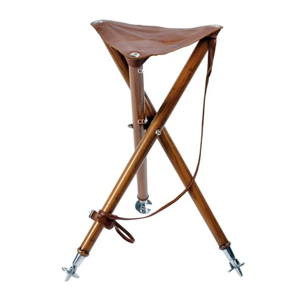 Trépied en bois, de marque Club Interchasse, doté d’une assise en cuir de buffle de 3,5mm.