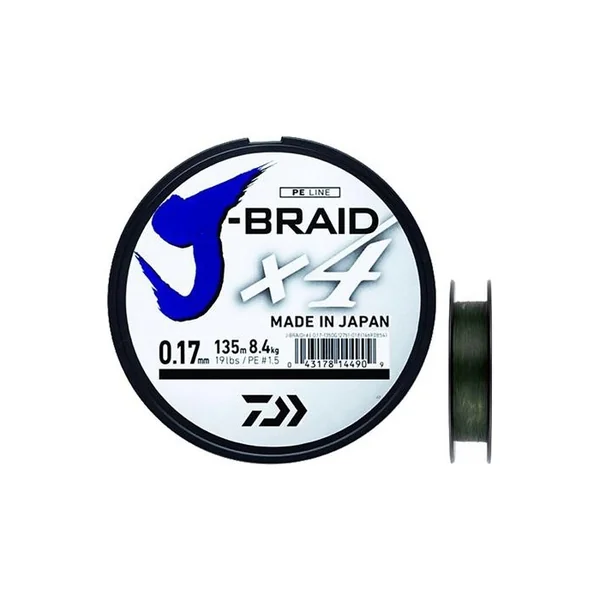 Tresse Daiwa J Braid X 4 brins Vert – 270M La célèbre tresse japonaise J-Braid se décline désormais en version 4 brins. Sa structure en 4 brins conçue au Japon lui offre une très bonne résistance aux noeuds et à l’abrasion. Elle est caractérisée par un profil rond et une rigidité bien dosée lui offrant une meilleure sensibilité et une très faible prise au courant.