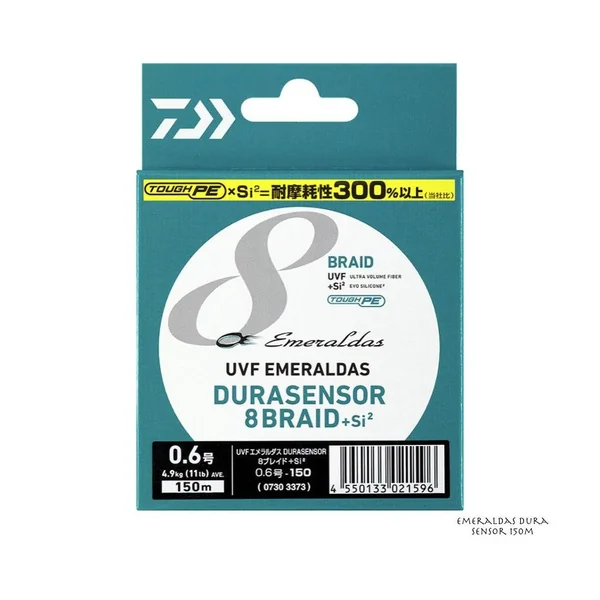 Cette tresse Emeraldas Dura Sensor 8 Braid de chez Daiwa a spécialement été conçue pour la recherche des seiches et calamars. Son appellation Emeraldas la fait rentrer dans la gamme spécialement étudiée pour ces pêches. Les fibres choisies par Daiwa assurent une très bonne résistance à l’abrasion que la marque quantifie à 300% supérieur à une tresse classique.