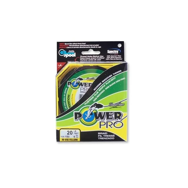 Tresse Power Pro – 135m 0.10mm 5kg Hi-Vis Yellow fibre Spectra tressée ultra-résistante, qui est traitée avec la technologie Enhanced Body pour créer une ligne incroyablement ronde, lisse et sensible. Paragraphe : Essayez PowerPro lors de votre prochaine sortie de pêche, et voyez par vous-même pourquoi c’est le rêve de tous les pêcheurs – et le cauchemar de tous les poissons ! Le cheval de bataille de la gamme PowerPro. Son prix est raisonnable et c’est un fil à faible allongement très performant.