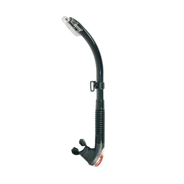 Tuba Beuchat Airflex Dry Noir Canaux internes de direction de l’eau • Tubulure de l’embouchoir intérieure plus fluide pour ne pas gêner l’évacuation de l’eau • Petite bordure sur la partie supérieure de l’embouchoir pour éviter que l’eau restante après l’opération d’expulsion vienne dans le flux d’air.